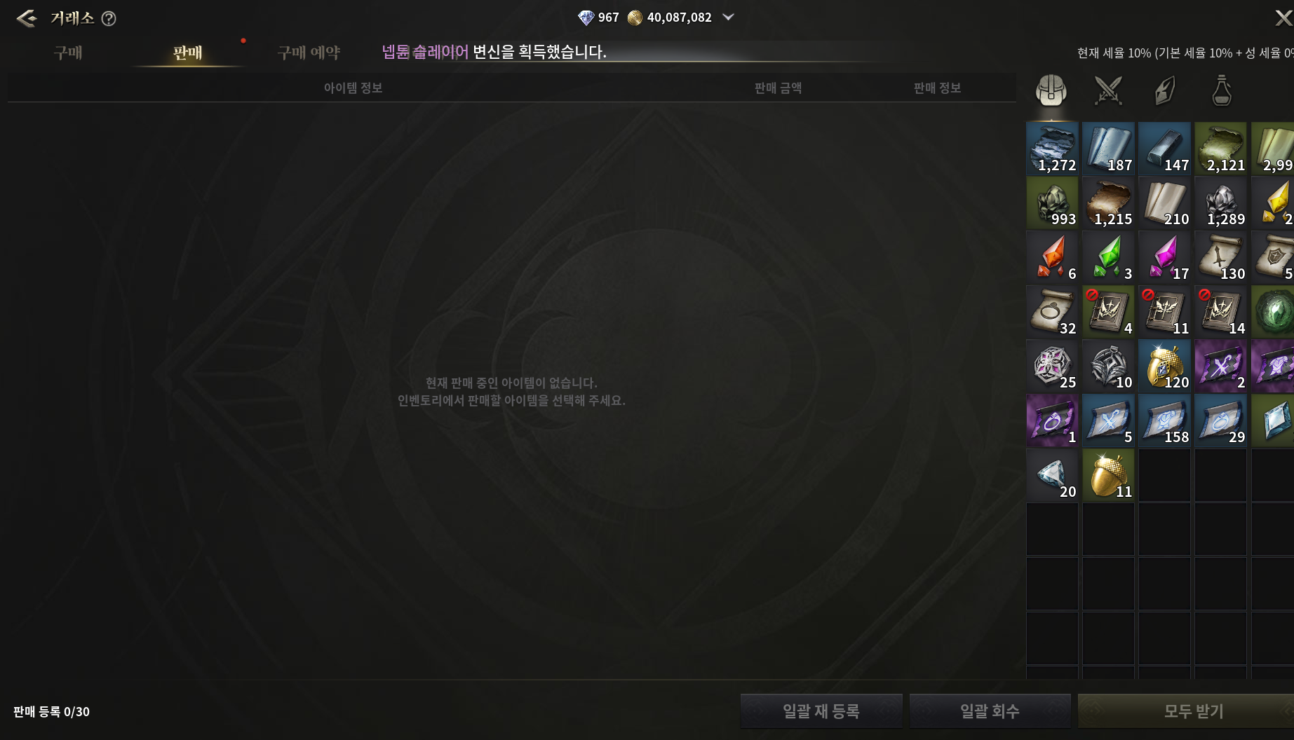 판매목록에 아이템이 다 사라지고 판매중인 아이템이 없다고 나옴