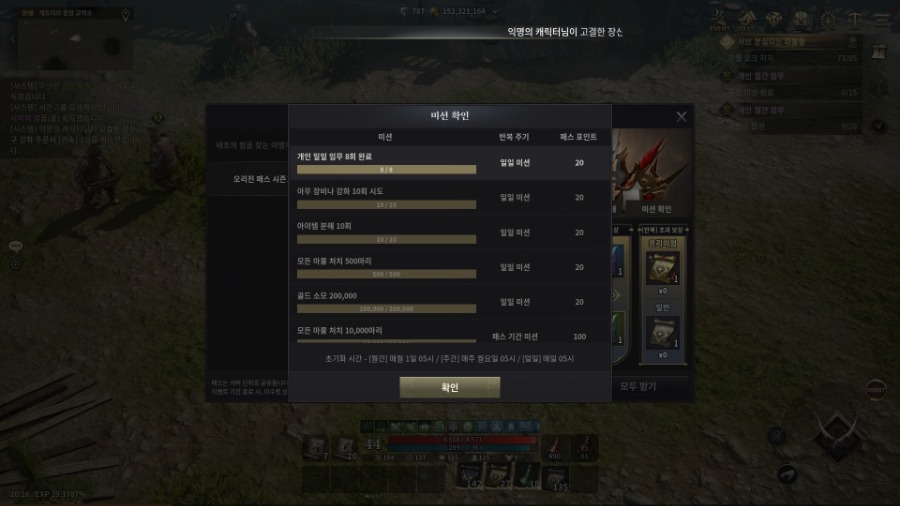 [버그 제보] 일일퀘스트 8개 완성했는데 패스포인트20이 올라가지 않고 있습니다