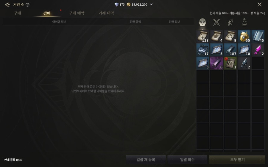 판매 올려놓은 목록 꽤 되는데 다 사라지고 판매 목록 중에 어떤 아이템이 팔려서 빨간 표시 떳는데 판매중인 아이템이 없다고 뜨네요ㅡㅡ