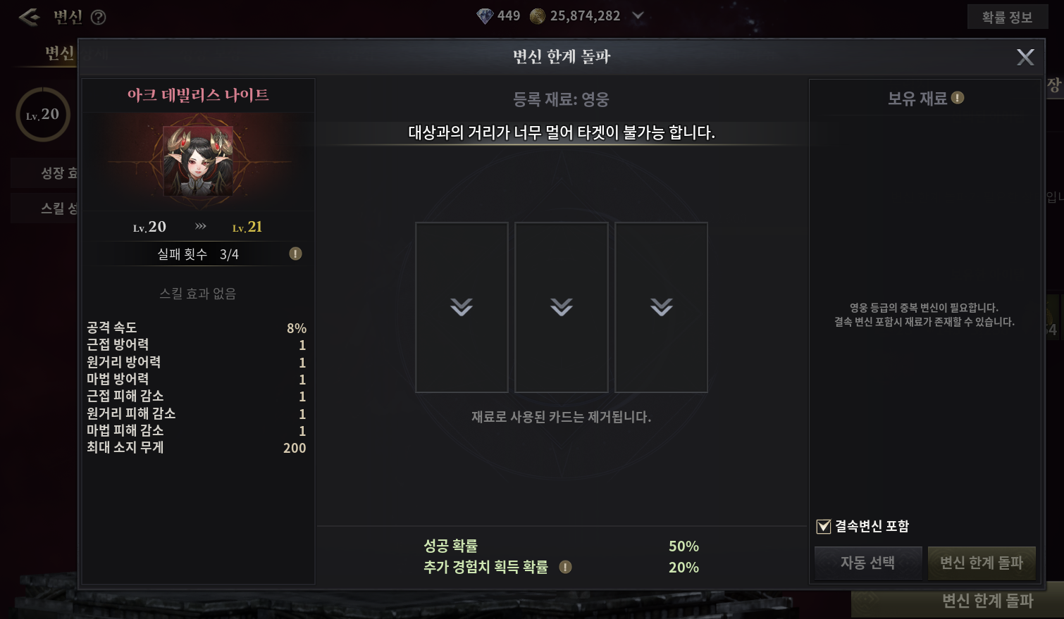 50% 마지막 성장 실패횟수 4번 꽉채워서 성장했습니다 적당히하세요