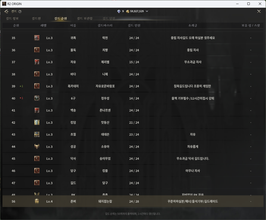 안녕하세요, 여행자님! [GM] 갈리입니다. 말씀해 주신 내용은 하단에 명시된 것처럼 1시간마다 순위가 갱신되고 있습니다. 만일, 갱신이 된 이후에도 동일 현상이 반복된다면 번거로우시더라도 명확한 증상 파악을 위해 상세한 설명 및 스크린샷과 함께 고객센터로 문의를 남겨 주시길 부탁드립니다. ▶ 문의 방법: [문의/신고 바로가기] 게시판 클릭 ▶ PIN ID: 로그인 후 접수 시 자동 입력 감사합니다.