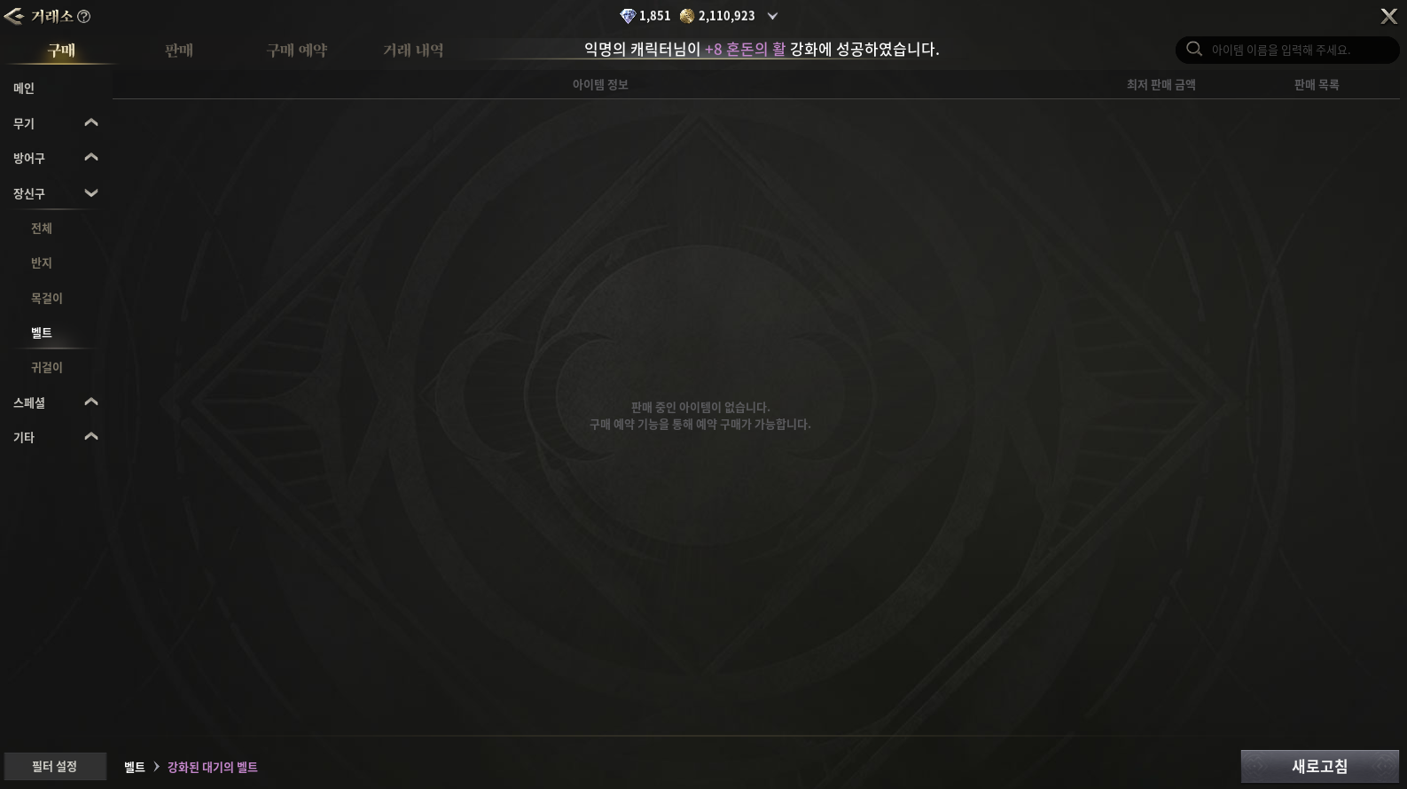 특정 아이템은 눌렀을때 강화리스트조차 표시되지 않습니다