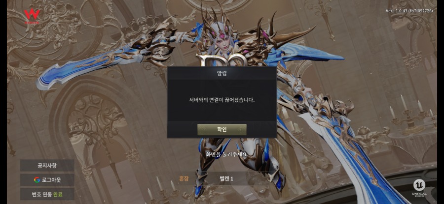 서버와의 연결이 끊어졌습니다만