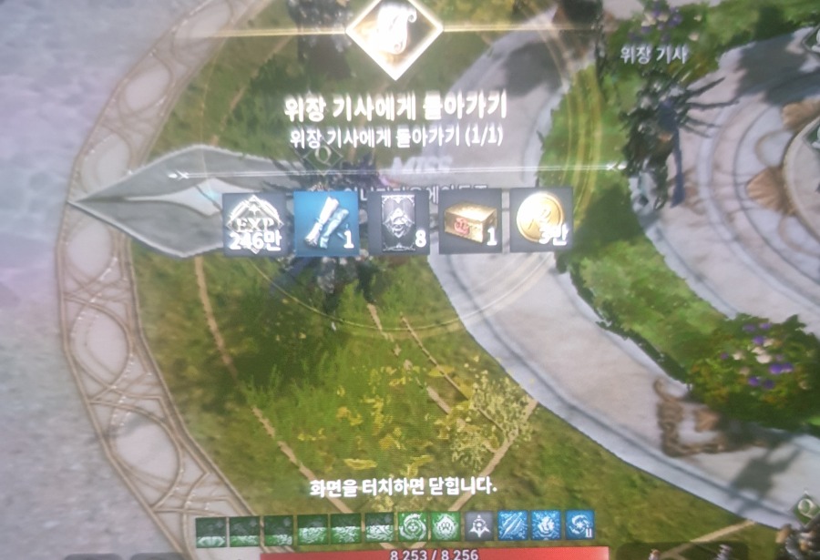 서브퀘스트중 보상받구 나면 화면 터지하라는 문구가 뜨면서