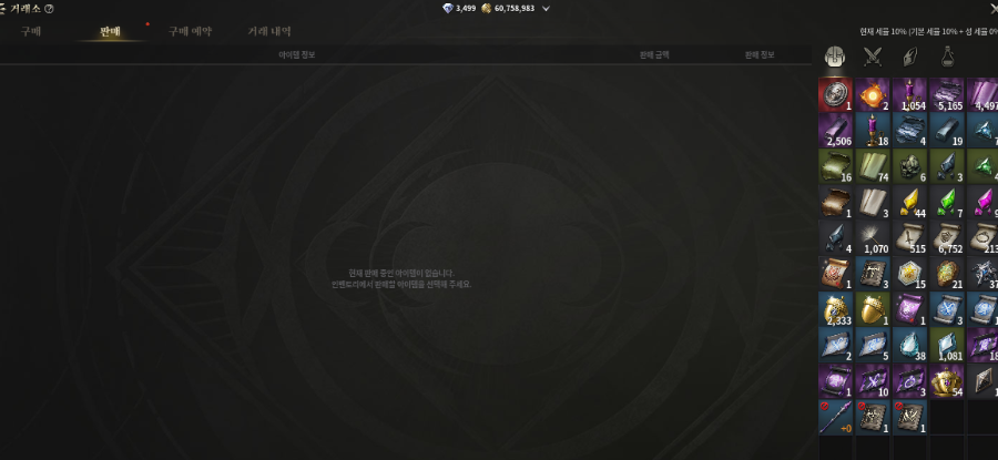 만약, 재접속시에도 동일하게 판매 목록 아이템이 보이지 않으시는 경우