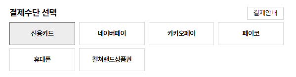 ※ PG사의 사정에 따라 일부 결제 수단이 노출되지 않을 수 있습니다.