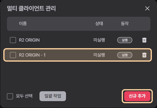 멀티 클라이언트는 여러 개의 R2 ORIGIN 클라이언트를 실행하여