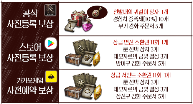 각각의 사전등록 별로 풍성한 보상도 제공하고 있으니,