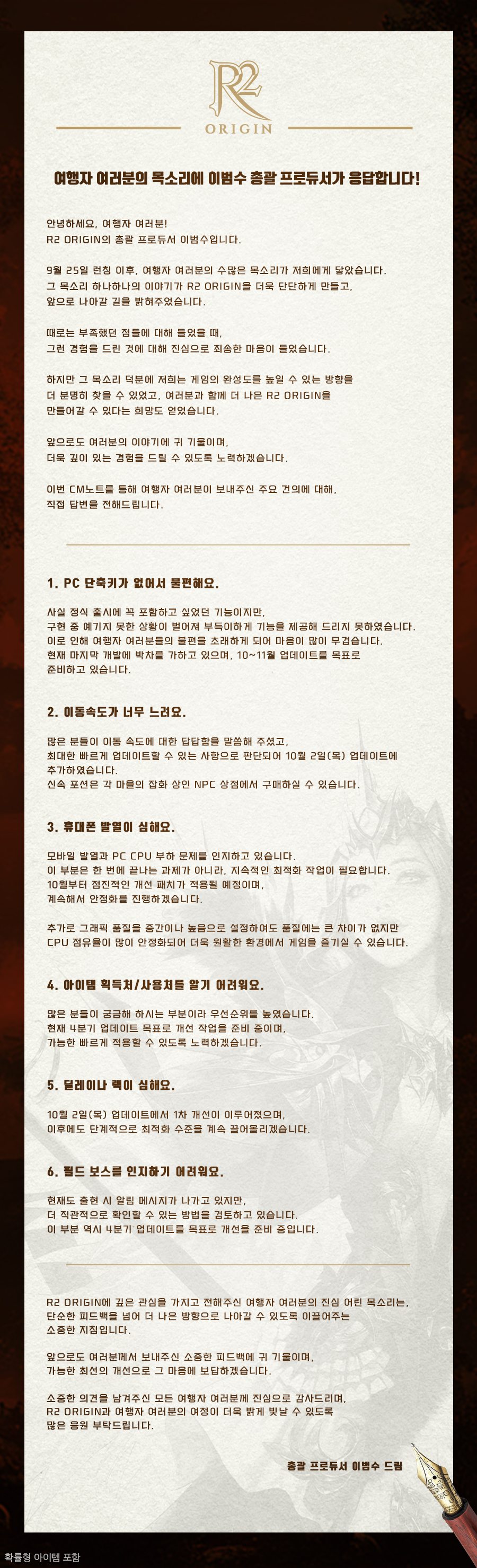 소통하는 모습 보기 좋네요 다만 업데이트 시기와 완성도는 매우 중요합니다!