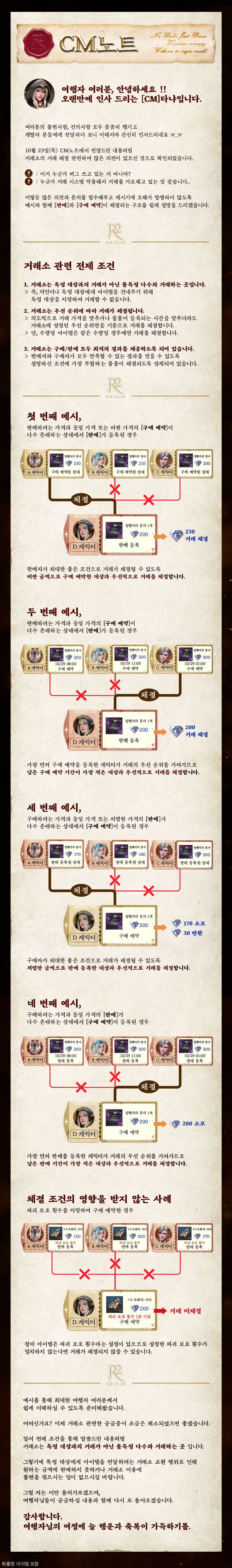 아이템 등록까지 일정 시간이 소요되다보니, 내역을 확인 했을때는 보이지 않았지만, 먼저 등록 대기중이던 다른 유저의 예약 내역으로 아이템이 판매가 되는 상황이 발생 할 수 도 있긴하겠네요. 물론, 위에서 언급하신 것 처럼 불특정 다수를 **로하는 거래이기때문에 어떤식으로 거래가 이루어지든 할 말은 없습니다만, 좀더 자세하게, 미리 올려주셨으면 어땠을까하는 아쉬운 마음에 적어봤네요..