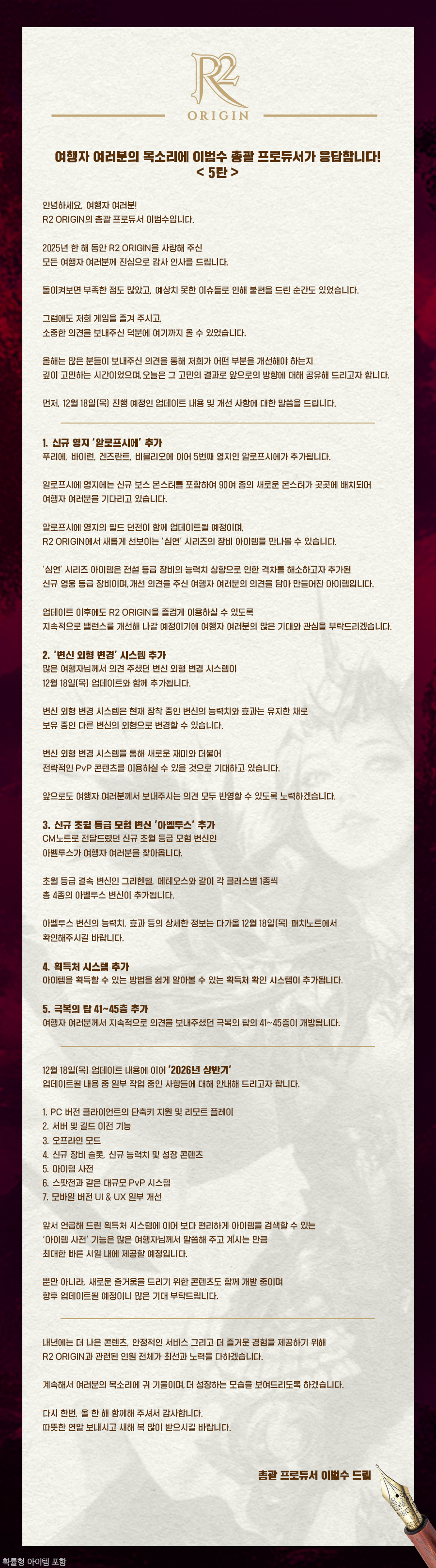 이게 일 좀 하는 걸로 보여요?? 제 정신인가? 나도 현혹당해서 계속 게임을 하고 있는 처지지만 이 CM노트를 보고 그런 생각이 들어요?? 9월 달에 오픈해서 12월 중순에 신규 영지 1개 나왔는데?? 이게 일 좀 한다고요?? 어자피 신규 영지 몬스터도 복붙일텐데??? 어자피 내부 직원들이 블라인드에서 해외 오픈 준비한다고 어제 폭로했는데 조삼모사로 열심히하세요