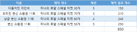 => 그런데 여기서 또 열받는 게, 티켓 획득도 복불복인데, 제작도 복불복이라는 점.