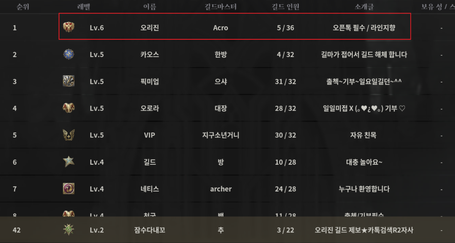 서버 정의봉 콩이 출동. 현재 오리진 길드는 원시/고대2층/발던에서 사냥 중.전체 평가