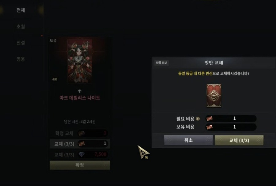 교체누르면 변신리스트 떠 확정은 ㄴㄷㆍ르지말고